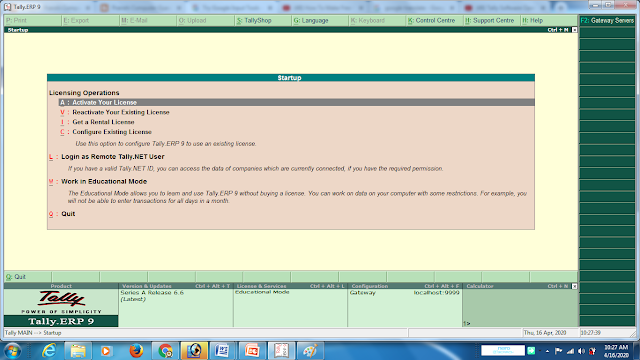 इस Option का उपयोग हम अगर Tally में एकाउंटिंग कार्य सीखना चाहते है तो उसके लिए कर सकते है इसमें हम Date को Change नहीं कर सकते साथ बहुत ऐसे Features जो License Version Tally में होता है उसका उपयोग नहीं कर सकते।