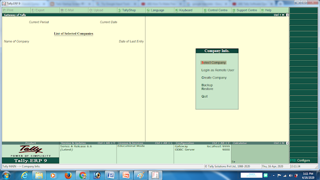 जब हम Tally को Open करते है तो Tally का Startup Screen पहले Open होता है, जहाँ पर हम कुछ Setting कर सकते हैI