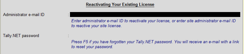 नोट – अगर हमें पासवर्ड नहीं पता होता है तो Tally Reactivation Screen पर F5 प्रेस करना होता है जिसमे Tally Activate करते समय जो E-mail ID डाले थे I वह E-mail ID डालना होता है। जिसमे Tally के तरफ से एक लिंक भेजा जाता है, जिसमे हम अपना नया पासवर्ड Create कर सकते है।